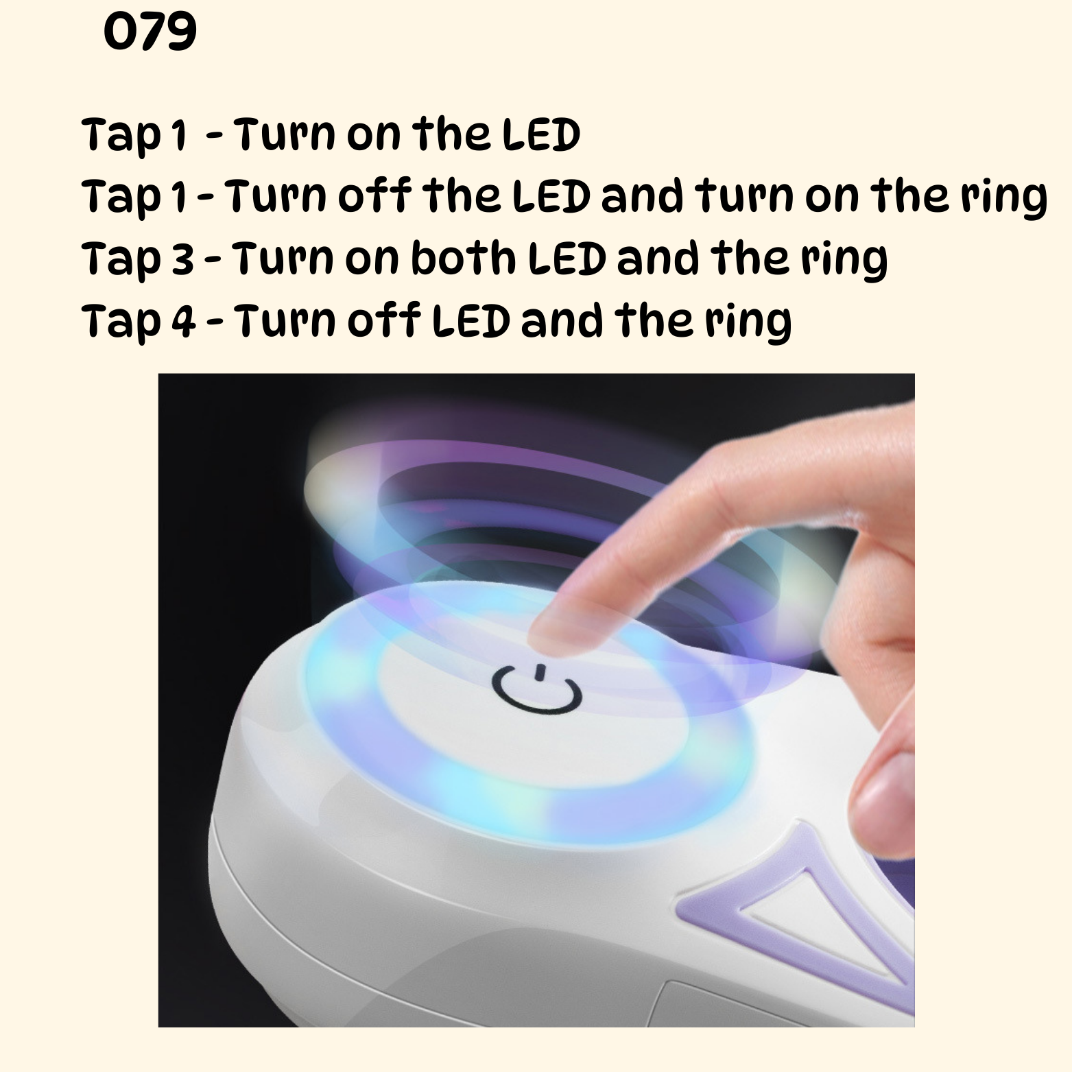 Tap twice to extinguish and ignite the light ring;